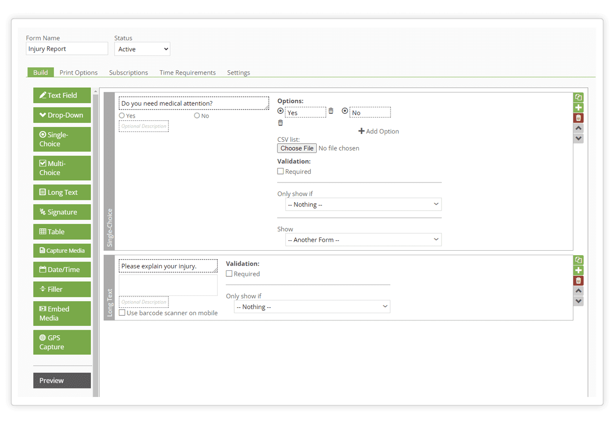 - Customizable Fields — Include various form elements like text fields, dropdown menus, checkboxes and photo/video uploads